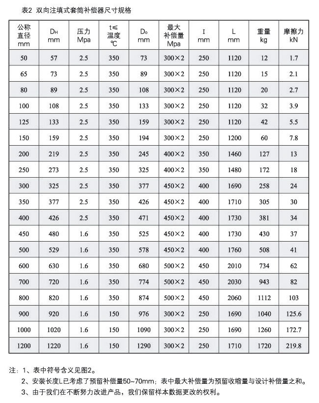 雙向補(bǔ)償式補(bǔ)償器,產(chǎn)品規(guī)格見表2,表中符號(hào)含義見圖2。