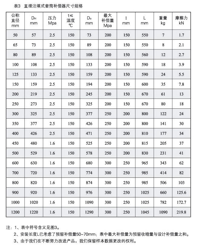 (3)直埋型注填式套筒補(bǔ)償器,舉例如下: