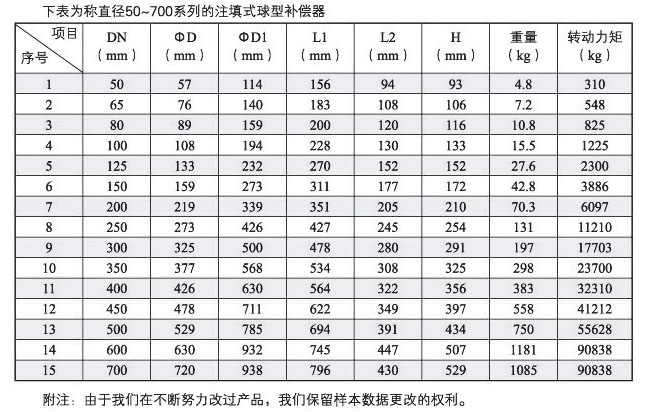 注填式球型補(bǔ)償器具有普通球型補(bǔ)償器能力大、無內(nèi)壓產(chǎn)生的軸向推力以及結(jié)構(gòu)緊湊,占用空間小等優(yōu)點(diǎn)外,與普通球補(bǔ)相比,又具有如下特點(diǎn):